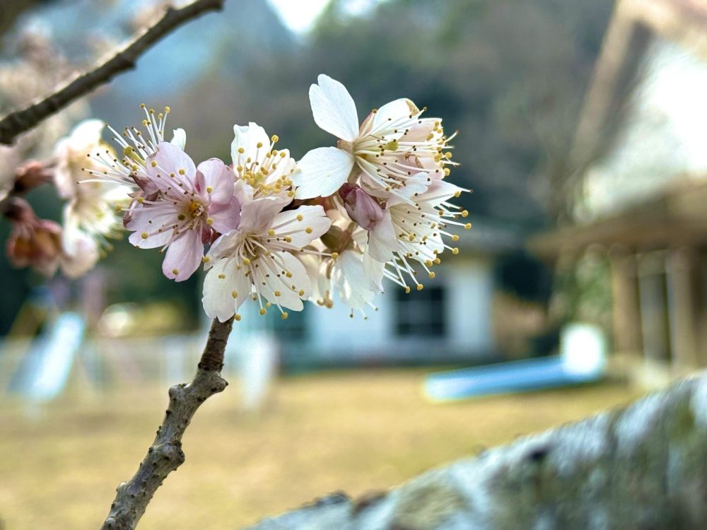 写真はお隣の旧保育所の梅の花。